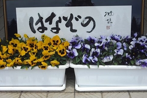 校 章 円を背景に,むらさきつつじの花びらを配置,中央に花園の二文字を配字。背景の色は緑で,地球を表している。本校は国際理解教育を積極的に推進しており,人類の平和と人間尊重の精神を培い,また,豊かな地球の自然を守っていこうとの願いがこめられている。