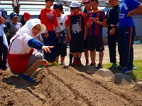 農園ボランティアとして協力していただいている地域の皆様の力をお借りし,毎年春に,学年ごとに様々な作物や花の種や苗の植え付けが行われます。植え方をわかりやすく教えてくださる地域の先生のお話に耳を傾ける子どもたちの表情は,いつも真剣です。温かな交流のもと確かな知識を教えてくださる皆様の姿からは,地域の教育力の素晴らしさをいつも感じさせられます。