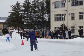 待ちに待ったスケートリンクがついにオープンしました!月曜日の雪で1日延期となってしまいましたが、今日は晴天の元でのスケート授業に、子供たちの顔も光り輝いていました。1年生は「今日が初めて~!」という子も多く、生まれたての子鹿の様なスタートでしたが、1時間の授業を終える頃にはグンとたくましい姿が見られるようになりました。今後、集中して授業に取り組み、記録会を迎えたいと思います。また、お忙しい中にもかかわらず、たくさんの保護者の方にひも縛りのお手伝いをいただきました。本当にありがとうございます。リンク閉鎖まで、もうしばらくお力添えをお願いします!