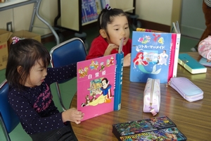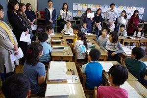 また、休み時間には花園小のボランティアの方による”よみきかせ”も行われました。よみきかせは毎月一回行われ、今回も聞きにきた子ども達の笑顔でいっぱいでした。「こんどはいつ?」と言ってくれる子もいました。ボランティアの皆様、いつもありがとうございます。