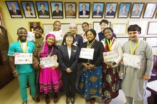 花園小学校では、開校当初から、世界の様々な国の人をお招きし、交流活動を行ってきています。今年度は、マラウイ・ザンビア・シエラレオネ・ルワンダ・エチオピア・ネパール・ナミビア・エスワティニ・アフガニスタンの9か国から9名のお客さんに来ていただき、低・中・高学年に分かれて交流を行いました。1時間という短い時間ではありましたが、日頃触れることのできない文化やその国の人との触れ合いは子ども達にとって非常に大きな経験で、今後ますます進むであろう国際化社会を生き抜く上で、視野を広げる大変有意義な時間となりました。