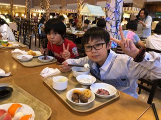 無事にホテルに到着し、お待ちかねの夕食バイキング。美味しく食べて、自主研修の歩き疲れをとっているところでしょう。食後はお待ちかねのプール。思いっきり楽しんでください!