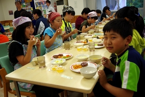今週は火曜からの1泊2日で、5年生が児童会館に宿泊学習に出かけています。夕食の時間に様子を見に行ってみましたが、ご覧の通りみんな元気いっぱいにいい表情で過ごしていました。この後はレクリエーションに天体観測、そして、お楽しみの(?)きもだめしと続きます。みんなで一緒の時間を過ごす中で、さらに絆を深め、人として大切なことを学びとってもらえればと思います。明日は実験学習を終えて昼過ぎには帰校します。5年生のみんな、ファイト!