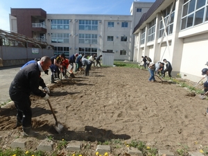 日曜日はお休みの日にもかかわらず、たくさんの方に環境整備にご協力いただき、ありがとうございました。保護者、教職員、子ども達とで120名を超える参加者でした。お父さん方には畑の土お越しと黒土入れ、お母さん方と子ども達には校地内やグラウンドの枯葉や石拾い等をしていただきました。みなさんのおかげで今年1年間の農園活動や、間もなく迎える運動会がとても楽しみになりました。今年度も様々な面でみなさんのお力添えをいただく場面があるかと思いますが、今後もどうぞよろしくお願いいたします。