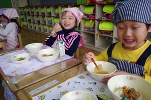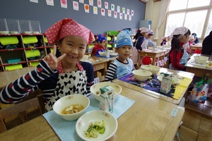 今年度がスタートして今日で1週間。1年生もいよいよ今日から給食が始まりました。今まで何度も食べてきている「昼食」ですが、小学校で食べるのは「初」ということで、エプロンをするのも、三角巾をかぶるのも、なんだか楽しくて仕方がないという様子でした。いざ食事が始まると、「給食おいしいね」「おかわりしたいな!」と、みんなの笑顔があちこちで咲いていましたよ。給食の時間は、楽しくおいしく食べるのと同時に、マナーや栄養の摂り方を学ぶ大切な時間でもあります。明日からも、みんなで力を合わせて素敵な時間にしていきます。