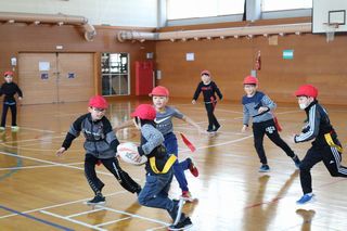 先週は、2日間にわたって全ての学年が体育の授業でタグラグビーを教えていただきました。講師は長年学校支援ボランティアとして協力をいただいている五十嵐さんです。五十嵐さんは花園小以外にもいろいろなところへ行ってラグビーの普及活動も行っている方で、指導がとてもわかりやすく、そして面白い!低学年から高学年まで、発達段階に応じた見事な指導で、どの学年も満足感いっぱいの授業となりました。ラグビーと言ったらやはり「花園」です。この伝統をずっと大切にしていきたいです。五十嵐さん、本当にありがとうございました。