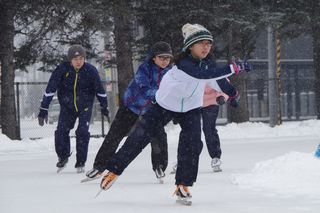 待ちに待ったスケートリンクがついにオープンしました!月曜日の雪で1日延期となってしまいましたが、今日は晴天の元でのスケート授業に、子供たちの顔も光り輝いていました。1年生は「今日が初めて~!」という子も多く、生まれたての子鹿の様なスタートでしたが、1時間の授業を終える頃にはグンとたくましい姿が見られるようになりました。今後、集中して授業に取り組み、記録会を迎えたいと思います。また、お忙しい中にもかかわらず、たくさんの保護者の方にひも縛りのお手伝いをいただきました。本当にありがとうございます。リンク閉鎖まで、もうしばらくお力添えをお願いします!