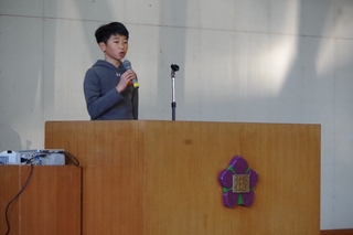 学校に子供たちの歌声が20日ぶりに帰ってきました。やはり学校に子供たちが来ると、校舎内の雰囲気がグンと明るくなります。まだまだ休んでいたい気持ちもあるかもしれませんが、心機一転みんなで頑張っていきたいです。今日の始業式では、校長先生から人間の3つの幸せについてお話があり、みんなで笑顔あふれる3学期にしていこうと気持ちを新たにすることができました。また、1・3・5年生の代表児童は、「授業中の発表を頑張りたいです」など、冬休みの思い出と3学期の目標を力強く話してくれ、とてもいい始業式になりました。