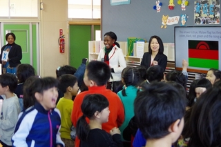 花園小学校では、開校当初から、世界の様々な国の人をお招きし、交流活動を行ってきています。今年度は、マラウイ・ザンビア・シエラレオネ・ルワンダ・エチオピア・ネパール・ナミビア・エスワティニ・アフガニスタンの9か国から9名のお客さんに来ていただき、低・中・高学年に分かれて交流を行いました。1時間という短い時間ではありましたが、日頃触れることのできない文化やその国の人との触れ合いは子ども達にとって非常に大きな経験で、今後ますます進むであろう国際化社会を生き抜く上で、視野を広げる大変有意義な時間となりました。