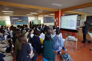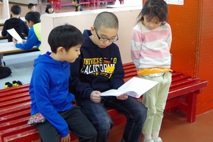 年度末が近づき、いよいよ1年のまとめの時期となってきました。学校の教育活動は「充実のラストスパート」という感じで、日々いろいろな取り組みが行われています。中でも、今週は外部と連携した活動が多く行われましたので、数回に分けてお伝えします。まずは放課後の居場所作りです。年間を通じて様々な活動を行っている「花園わいわいパーク」ですが、今回は本校の図書ボランティアのみなさん、そして啓西小学校のボランティアさんと連携し、読み聞かせと本のしおり作りを行いました。読み聞かせでは、数冊の本の読み聞かせに加え、マジックやクイズもあり、参加した子供たちは目を大きくして見入り、聞き入っていました。高学年の子たちも読み聞かせは大好きなので、教室全体がとてもいい空気に包まれました。後半のしおり作りでは、それぞれが思いを込めたしおりを作ることができ、大満足でおうちに帰っていきました。花園の子供たちはたくさんの人に支えられていて幸せだなぁと、改めて実感する時間となりました。協力をいただいたみなさん、本当にありがとうございました。