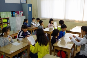学校では1年の間に、たくさんの外部講師を招いた授業が行われています。学ぶ内容やその講師は実にバラエティに富んでいて、どの授業でも、子供たちにはたくさんの学びが生まれています。先週は、1年生の教室で「昔遊び」の出前講座が行われました。今回の昔遊びは「竹わり」と「おはじき」で、子供たちは遊び方を覚えていろいろな技に挑戦し、日頃できない体験を思う存分楽しんでいました。ご家庭でも、保護者の皆さんが昔慣れ親しんだ遊びを一緒にされてみてはいかがでしょう。きっと楽しいひとときを過ごせるのではないかと思います。
