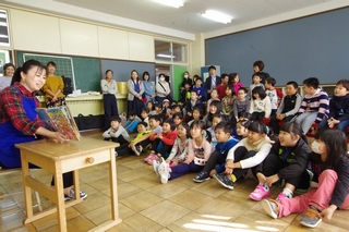 また、休み時間には花園小のボランティアの方による”よみきかせ”も行われました。よみきかせは毎月一回行われ、今回も聞きにきた子ども達の笑顔でいっぱいでした。「こんどはいつ?」と言ってくれる子もいました。ボランティアの皆様、いつもありがとうございます。