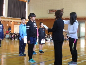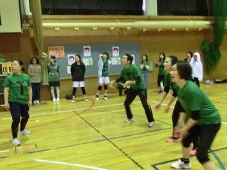 毎年恒例のPTAミニバレー大会が20日に開催されました。PTAの皆様のご協力により、昨年度よりも多い参加者・チーム数となり、大会の目的である“親睦”を大いに深めることができました。試合は逆転に次ぐ逆転で大盛り上がり。また、衣装がそろっていたり、かけ声がそろっていたりと、チームそれぞれのカラーが出ていてとても素敵でした。「緑の大亀」さんには小さな子達の「怖い~」という声もあったようですが、試合前に駆けつけてくれたリーチとともに、大会を盛り上げてくださり本当にありがとうございました。見事優勝に輝いた2年1組の「Rei!Wa!JUMP!!」チームをはじめ3チームが代表として鉄南ブロックの大会に出場します。そちらでも大いに楽しみ、親睦を深めてほしいと思います。練習・本番とお忙しい中にも関わらず、参加いただきましたPTAの皆様、たいへんありがとうございました。