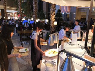 無事にホテルに到着し、お待ちかねの夕食バイキング。美味しく食べて、自主研修の歩き疲れをとっているところでしょう。食後はお待ちかねのプール。思いっきり楽しんでください!