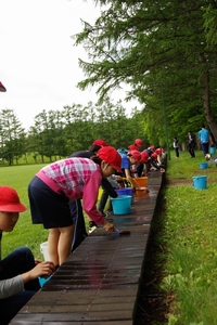 今年度も、全校児童で「花園クリーン作戦」を行いました。1・2・3年生は近隣の公園のゴミ拾い、4・5・6年生はグリーンパークの400mベンチの汚れ落としを行い、日頃利用している公園がとてもきれいになりました。今回の活動は、地域を守り、地域を愛する心にきっとつながっていくはずです。いつまでも素敵な環境を自分たちの手で守り続けていってほしいです。