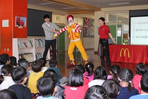 木曜日には、不審者対応学習が行われました。今回は子ども達もよく知っているあのマックの「ドナルド」と警察署の方が花園小まで来てくれて、楽しくわかりやすく、でもとっても真剣に、子ども達が毎日を安全に過ごすために大切なことを教えてくれました。学習の中で子ども達は「今日の学習のことについてお家の人と一緒にお話をする」という約束をドナルドとしています。もうお話をしたご家庭が多いのではないかと思いますが、ぜひこの週末にご家庭での話題としてみてください。子ども達が安全に過ごせる毎日をみんなで作っていきましょう!