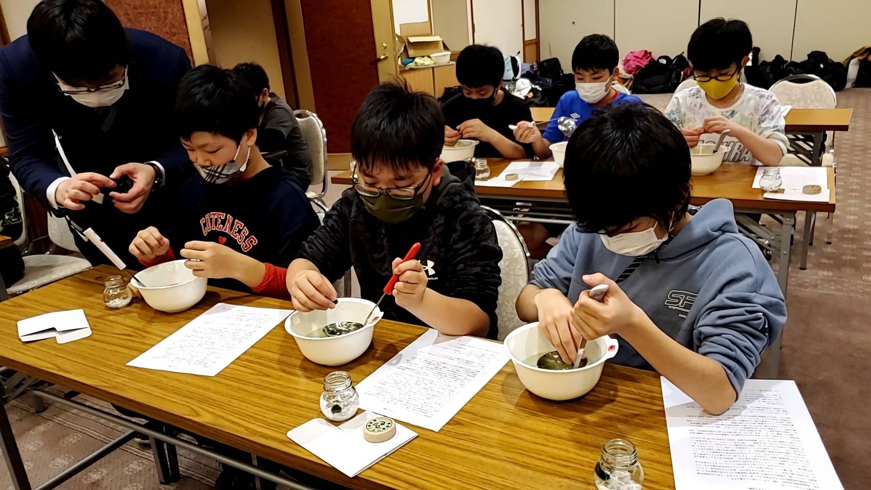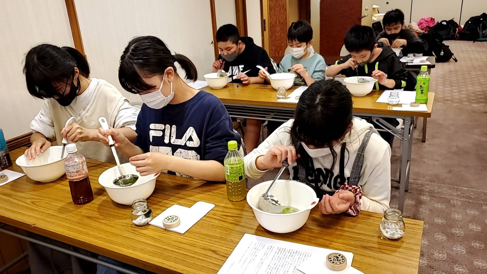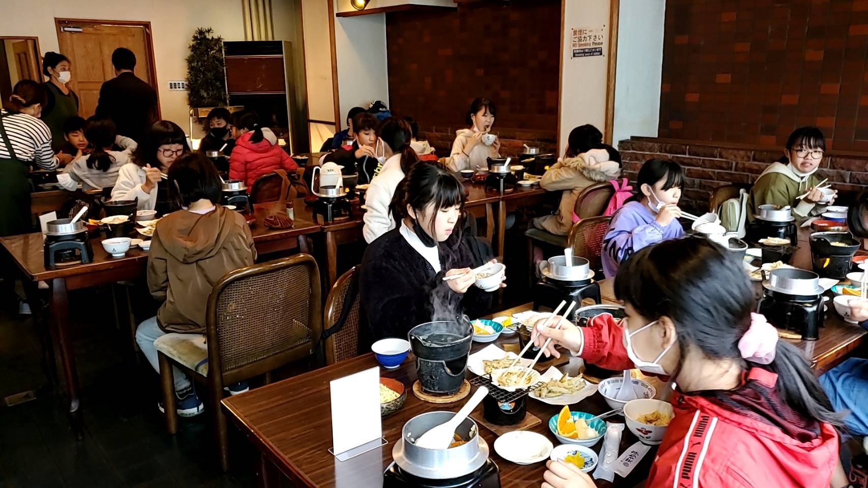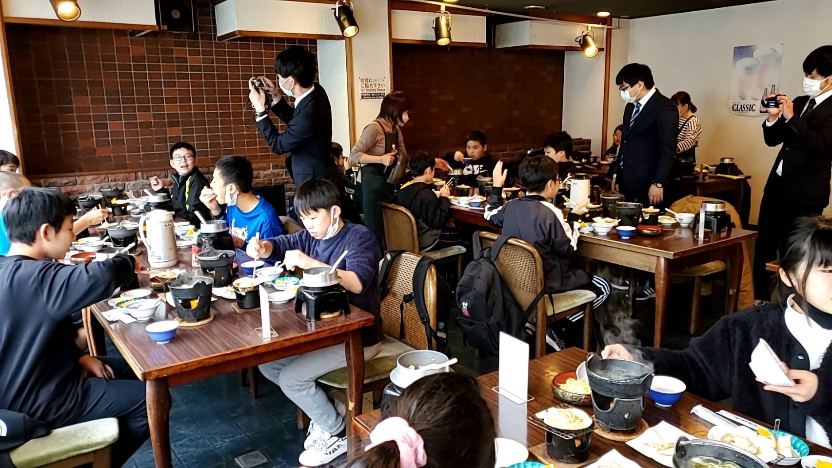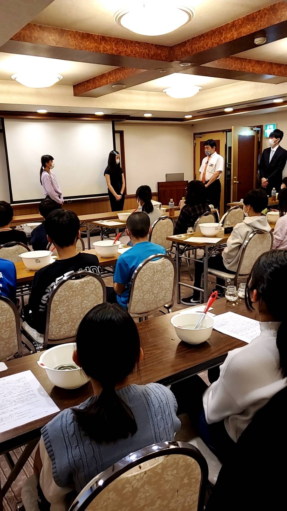 ホテルでの朝食の様子 みんな元気に二日目をスタートさせました。このあとは、先に退館式を済ませ、マリモ作り体験をする予定です